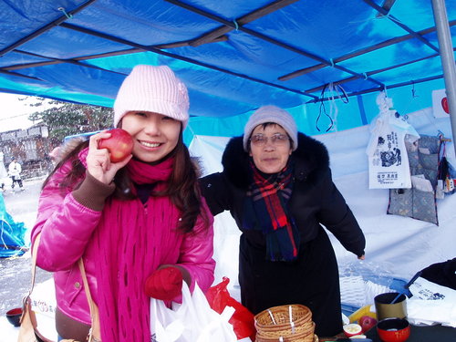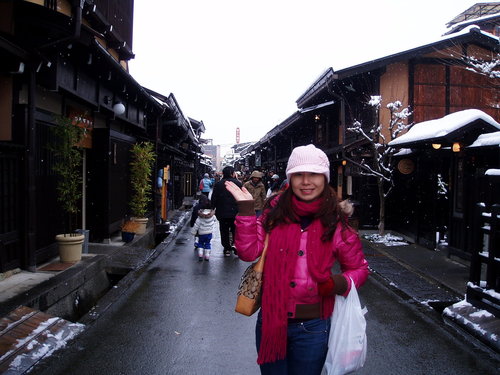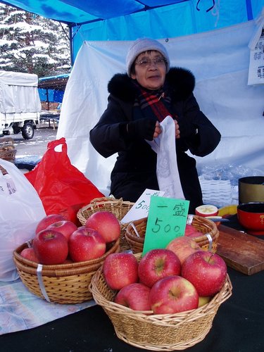飛驒高山位於日本崎埠縣的高山裡,因為位處清澈潔淨的深山,好山好水好空氣,除了養出比神戶牛更鮮嫩的飛驒牛!另外這裡還保有江戶時期的生活情調,就是傳統早市,當地農婦會擺出自製的醬菜供人試吃購買,其中絕不能錯過的是飛驒特產的"富士蘋果",真的又甜、又脆,重點是超級便宜,記得一定要跟這位和藹的歐巴桑買喔!因為我買一籃她多送我"五粒"富士耶!