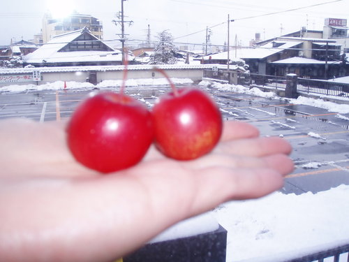 可愛的歐巴桑還送我兩粒"超級迷你"品種的富士蘋果喔!像櫻桃一樣大小~超級卡哇依吧!是真的可以吃的喔!同樣很甜、很脆!