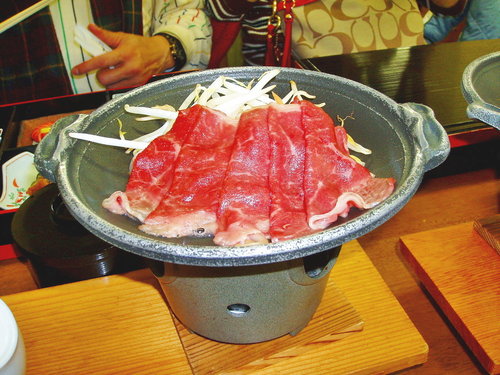 來這一定要品嚐飛驒牛肉小火鍋套餐,吃的是乾鍋不是加高湯的壽喜鍋,這樣才能吃得出牛肉的鮮嫩口感!套餐有三、四樣醬菜、兩樣小菜、茶碗蒸、味增湯、一碗超Q的白飯上面灑滿海苔粉!吃的很飽、也很滿足!